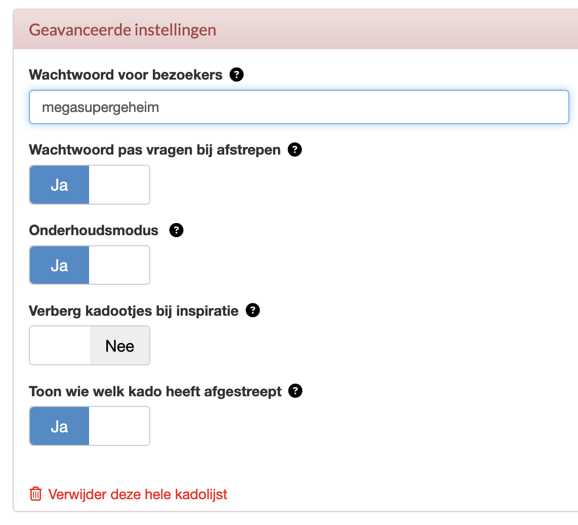 Klik op Verwijder deze hele kadolijst, en bevestig. Klaar :-)